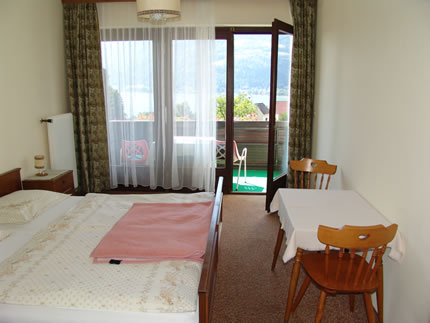 Wir bieten schöne Zweibettzimmer mit Dusche und WC. Großteils haben die Zimmer einen Balkon mit Blick auf den Ossiacher See.